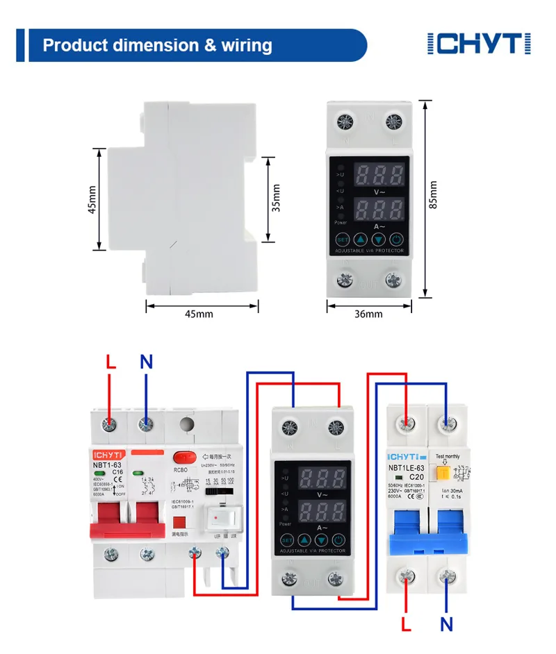1 ~ 40A समायोज्य (पूर्वनिर्धारित: 40A) 1 ~ 63A समायोज्य (पूर्वनिर्धारित: 63A) |
