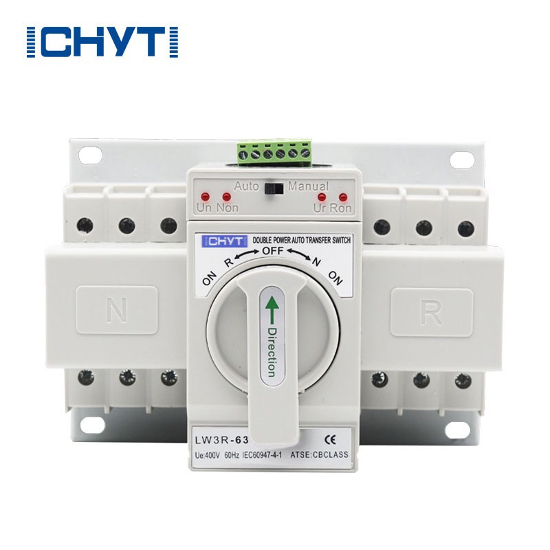 चाइना फ्याक्ट्री ICHYTI स्वचालित जेनेरेटर परिवर्तन स्विच इन स्टकले महत्त्वपूर्ण स्थानहरूको सामान्य सञ्चालन सुनिश्चित गर्न अचानक बिजुली आउटेजको अवस्थामा स्वचालित रूपमा ब्याकअप पावर स्रोतमा स्विच गर्नु हो। अग्लो भवनहरू, आवासीय क्षेत्रहरू, अस्पतालहरू, एयरपोर्टहरू, डकहरू, फायर फाइटिंग, धातु विज्ञान, रसायनहरू, कपडाहरू, र अन्य ठाउँहरूमा जहाँ पावर आउटेजलाई अनुमति छैन त्यहाँ व्यापक रूपमा प्रयोग गरिन्छ। सामान्य अनुप्रयोग परिदृश्यहरूमा लिफ्टहरू, आगो सुरक्षा, र निगरानी समावेश छन्, र बैंकहरूले पनि यस्तै निर्बाध बिजुली आपूर्तिहरू प्रयोग गर्छन्। स्वचालित जेनेरेटर परिवर्तन स्विचले ओभरभोल्टेज, अन्डरभोल्टेज, र चरण घाटाको स्वचालित स्विचिंग पनि प्राप्त गर्न सक्छ, र बुद्धिमान अलार्म प्रकार्य छ।