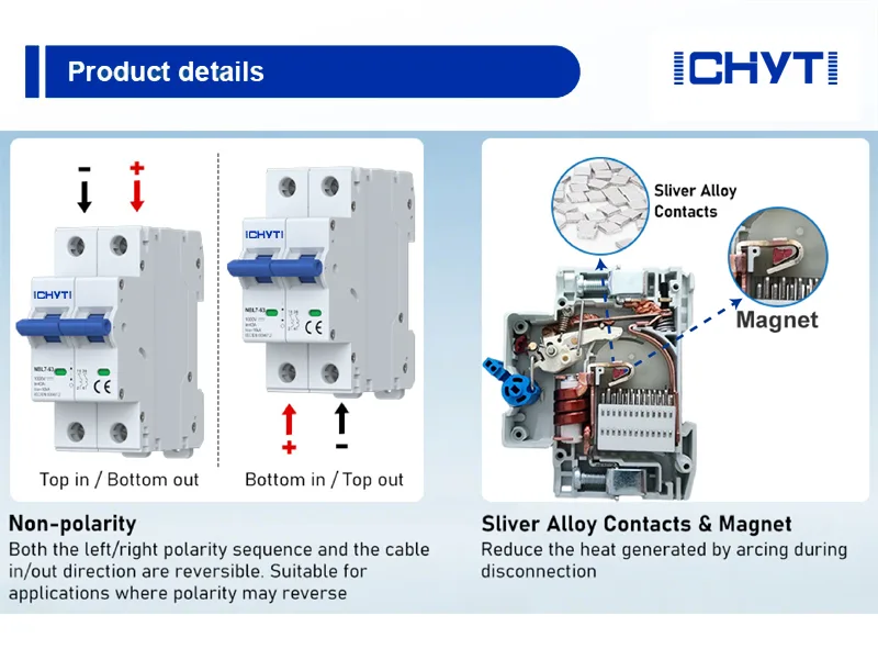 प्रतिस्पर्धी मूल्यमा उत्कृष्ट गुणस्तर प्रदान गर्ने DC सर्किट ब्रेकर स्विचका चिनियाँ निर्माताहरूमध्ये एक हो CHYT। सम्पर्कमा प्राप्त गर्न स्वतन्त्र महसुस गर्नुहोस्। यसको मूल्याङ्कन गरिएको वर्तमान 63A भन्दा बढी हुँदैन।
