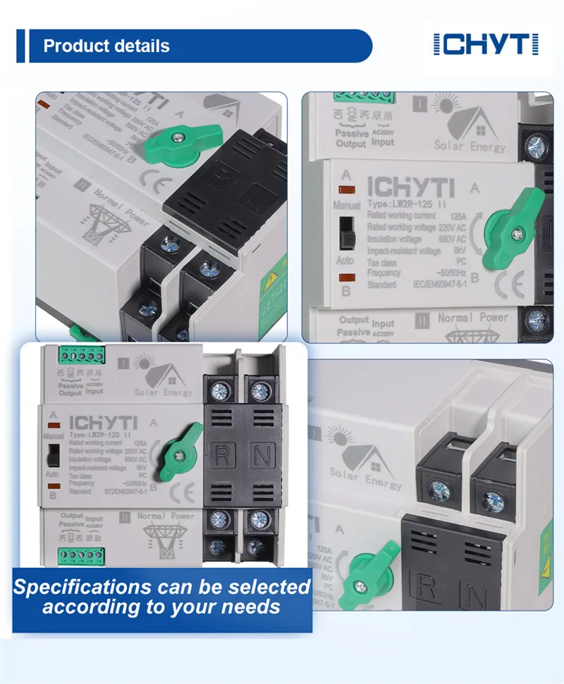 ICHYTI दोहोरो पावर स्वचालित स्थानान्तरण स्विच अनुकूलित गर्न सकिन्छ, र तपाइँ यसलाई विश्वास संग किन्न सक्नुहुन्छ। हामी तपाईसँग काम गर्न र तपाईलाई थप जानकारी प्रदान गर्न तत्पर छौं। यदि तपाइँसँग कुनै प्रश्नहरू छन् भने, कृपया हामीलाई कुनै पनि समयमा सम्पर्क गर्न नहिचकिचाउनुहोस्। हाम्रो प्रयोगशाला IEC अन्तर्राष्ट्रिय मापदण्ड अनुसार डिजाइन गरिएको छ र सबै उत्पादन परीक्षण आवश्यकताहरू पूरा गर्दछ।